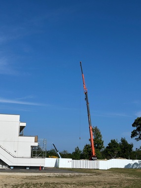 本館の建物よりも高くそびえる重機!