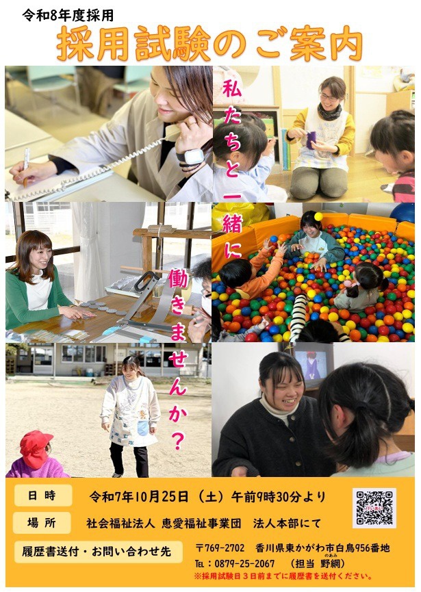 恵愛福祉事業団では下記日程にて採用試験を予定しています。
