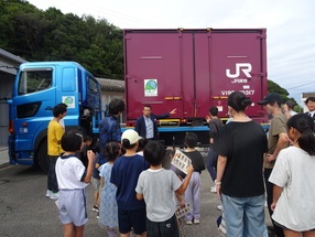 JR貨物鉄道四国支店の皆様が、10トントラックでコンテナ2台を白鳥園に運んでくださり、JR貨物のお仕事についてのDVDを鑑賞したり、実際にコンテナに入らせていただいたりして、子どもたちと交流する機会をいただきました。ジュースや生活用品などもたくさんご寄附くださいました。楽しい一日をありがとうございました!