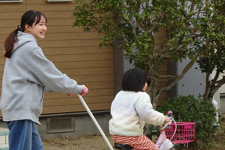 A.大学時代に恵愛学園とけいあいこども園で実習をさせていただき、実際に現場を経験する中で職場の雰囲気の良さや仕事のやりがいを感じ、この職場で働きたいと思うようになりました。また、地元で働きたいという思いもあり、事業団への就職を決めました。