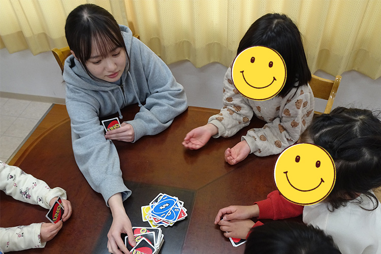 A.子ども一人一人に応じた関わりをすることです。子どもたちは育ってきた家庭状況、性格・特性が違う為、個々に異なった支援が必要になってきます。それを理解した上で関わることが大切であるため、日々、子どもたち一人一人のことを理解しようと頑張っています。